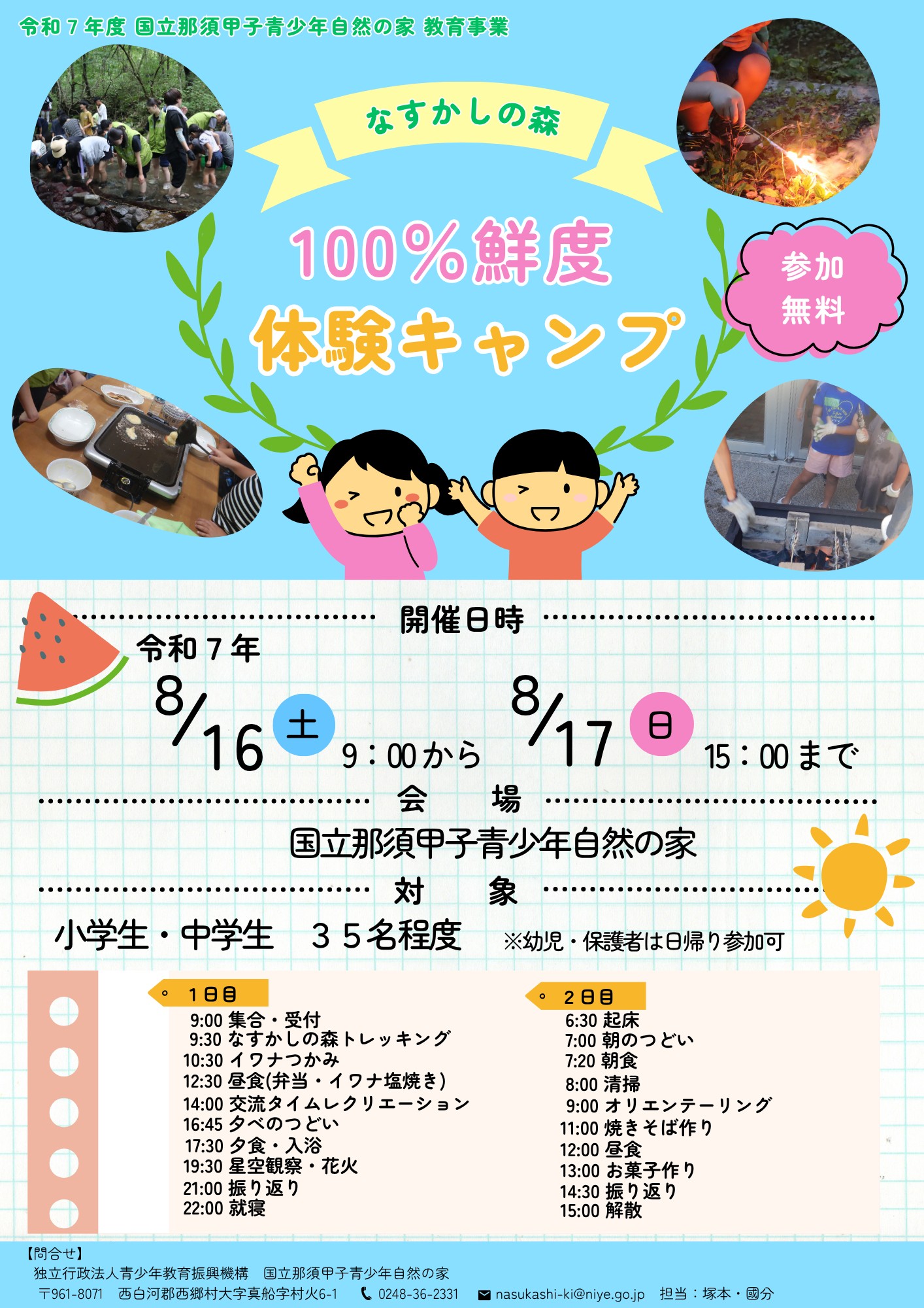 8月16日(土),17日(日)那須甲子少年自然の家キャンプのご案内
