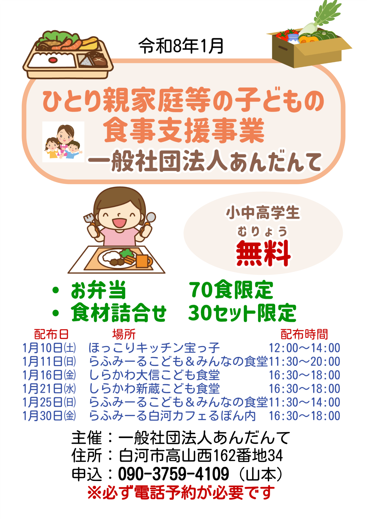 令和8年1月ひとり親家庭等の子どもの食事支援事業案内